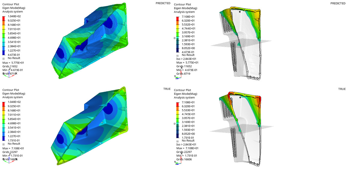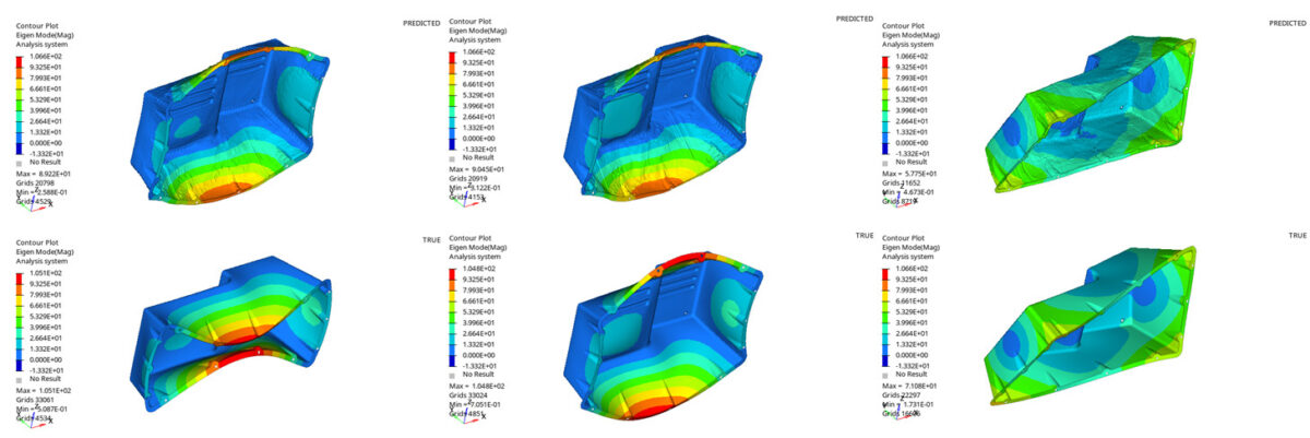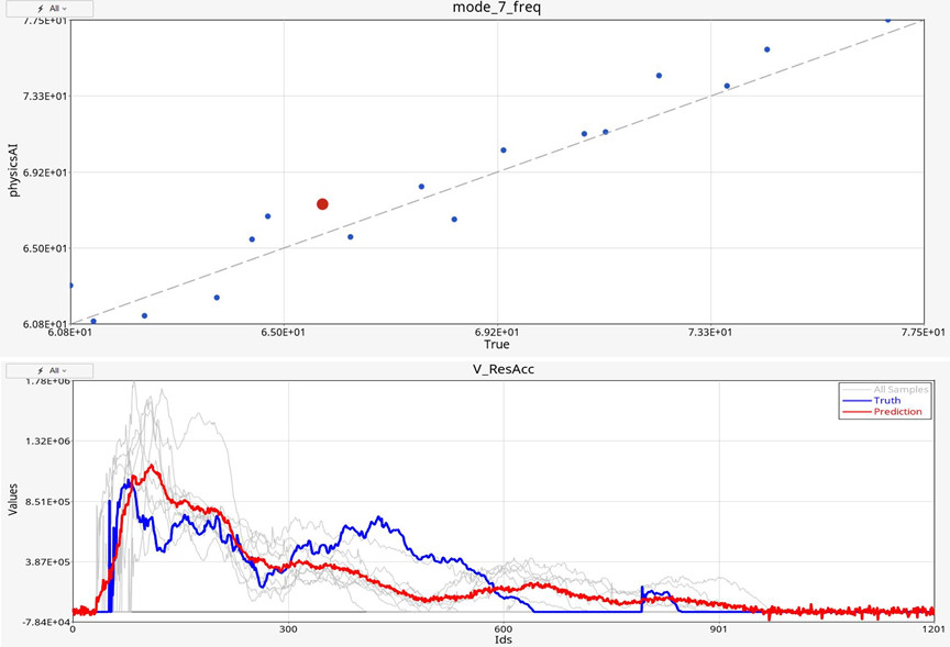 Altair PhysicsAI artık faz dışı sonuçlar da dahil olmak üzere modal analiz sonuçlarını eğitim modeli olarak kullanarak tahminler oluşturmaktadır.