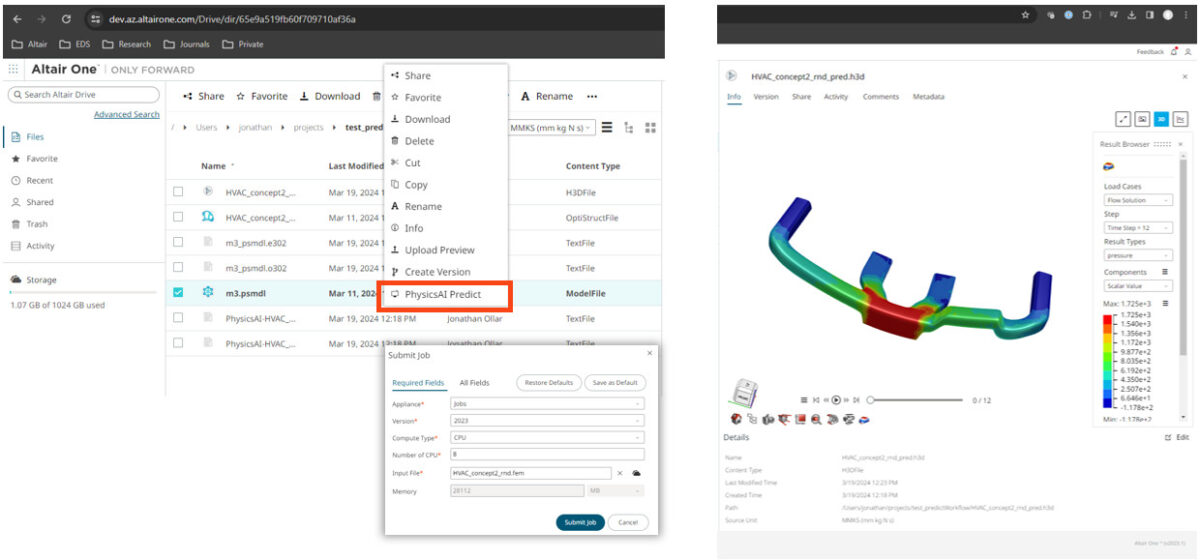 Özellikle büyük ve karmaşık fizik modellerinin eğitimin hızlandırmak için kullanılabilen Altair One bulut sisteminde artık eğitime ek olarak tahminler de desteklenmekte. Altair HyperMesh‘teki kullanıcı deneyimine benzer şekilde sonuçların etkileşimli bir görselleştirmesi mevcuttur.