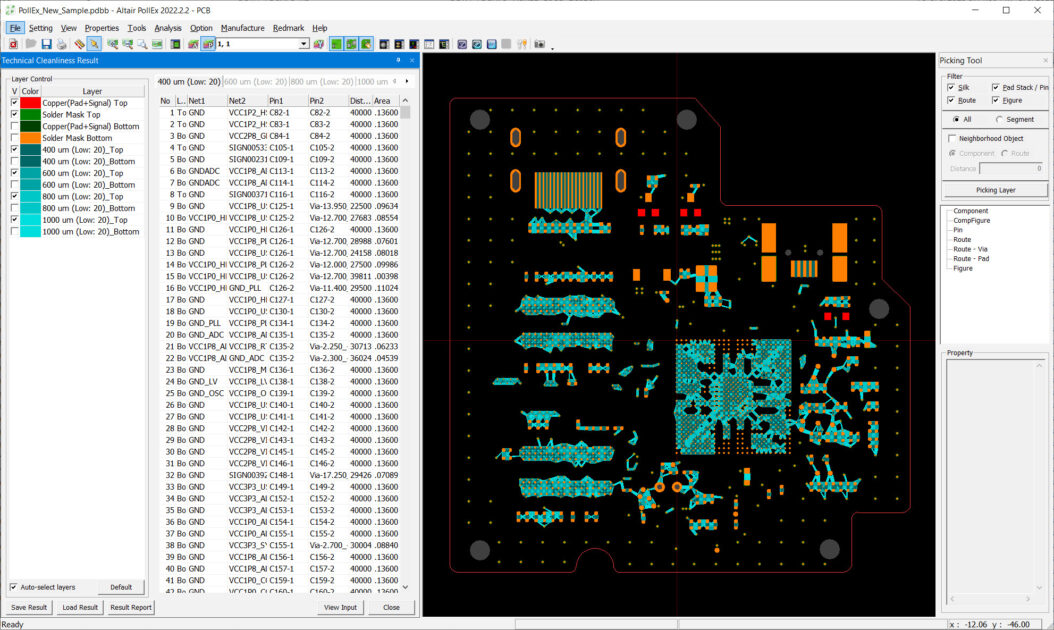 - Kirlenmeyi incelemek ve analiz etmek ve PCB kartındaki partiküllerin temizliğini sağlamak için bir Technical Cleanliness menüsü eklenmiştir.