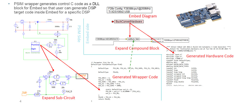 PSIM-Embed Wrapper, Altair® PSIM™ içindeki denetleyici uygulamaları için bir DLL bloğu oluşturur ve Altair Embed‘e aktarır, böylece kullanıcı Embed’in desteklediği herhangi bir DSP / Mikro cihaz için hedef kodu oluşturabilir.