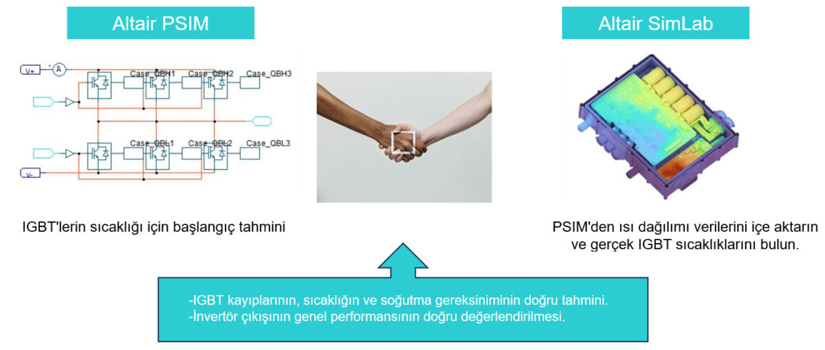 Anahtarlamalı güç cihazları tarafından üretilen ısı, sıcaklığa bağlıdır; Altair PSIM, termal yönetim sisteminin sıcaklığı Altair SimLab (çoklu fizik modelleme ve analiz platformu) tarafından sağlanırsa, ısı dağılımlarını doğru bir şekilde tahmin edebilir. Ancak, Altair SimLab termal yönetim sistemini tasarlayıp analiz edebilmesi için doğru ısı dağılımlarına ihtiyaç duyar. Bu nedenle, mühendislerin termal yönetim sistemi ile güç elektroniği dönüştürücüleri geliştirmelerine yardımcı olacak basit ve kullanımı kolay bir PSIM-SimLab bağlantısına ihtiyaç vardır.