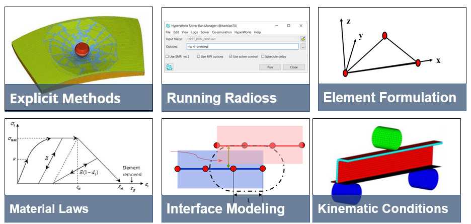 Altair uzmanları tarafından hazırlanan Altair Radioss eLearning sayfası; çarpışma, darbe, patlama vb. problemlerin çözümünde kullanılan explicit dinamik sonlu elemanlar çözücüsü Altair Radioss hakkında temel bilgileri içermektedir.