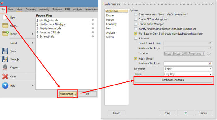 2-) Altair SimLab 2017.2.2 versiyonuyla birlikte birlikte gelen yeni özellikle, menülerde yer alan simgeler için klavye kısayolları tanımlayabilirsiniz.