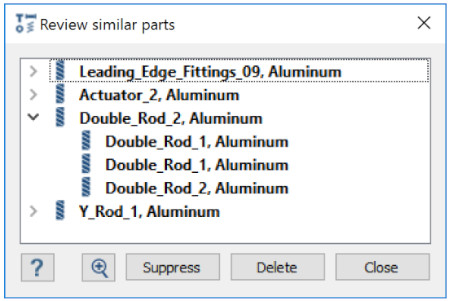 Montaj araç çubuğuna “review similar parts”, benzer parçaları gözden geçirme işlevi eklenmiştir. Parçalar doğrudan bu iletişim kutusundan gizlenebilir veya silinebilir.