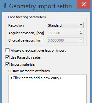 Altair SimSolid CAD dosyası içeri alımı esnasında, malzeme özellik bilgisi içeren herhangi bir parça metadata niteliğini okumaktadır. Bu bilgi SimSolid malzeme veri tabanındaki mevcut bir isimle eşleşirse, karşılık gelen SimSolid malzeme özellikleri uygulanacaktır. Bu özellik CATIA, NX ve JT formatlarında geçerlidir. CREO gibi diğer dosya formatlarını desteklemek için kullanıcı tarafından özel metadata niteliği girilebilir.
