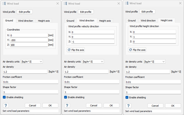 Rüzgar yükü artık yapısal analizde bir sınır koşulu olarak desteklenmektedir. Bu özellik, ampirik bir denkleme dayalı olarak değişken basıncı otomatik olarak değerlendirir ve uygular. Girdi; zemin, rüzgar yönü, rüzgar profili, yükseklik ekseni, hava yoğunluğu, sürtünme katsayısı ve şekil faktörünü dikkate alır. Rüzgar yönünde engeller bulunan yüzeylerde basınç uygulanmasını kısıtlayan koruma seçeneği de ek bir hassasiyet katmanı sağlar. Bu kapsamlı yaklaşım, rüzgar etkilerinin kritik olduğu inşaat mühendisliği ve mimarlık gibi endüstriler için çok önemlidir.