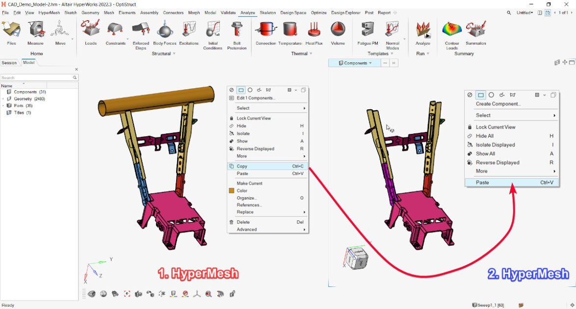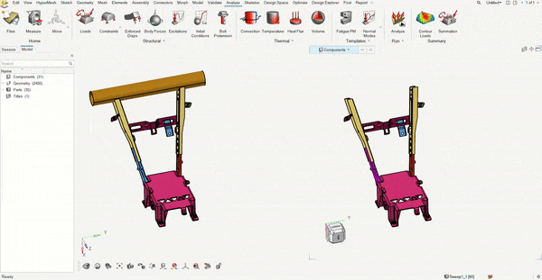 Aynı anda, her biri kendi modeline sahip birden fazla Altair HyperMesh penceresini 2022.3 versiyonuyla birlikte açabilirsiniz. Bu, uygulamanın birden fazla kopyasının açık olması ihtiyacını ortadan kaldırır ve bellek (RAM) yükünü azaltır.