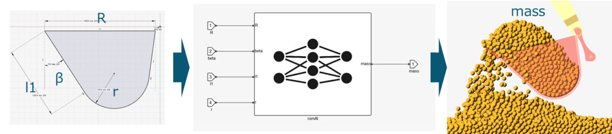 Oluşturulan ROM, girdi olarak kepçe şekli parametrelerine dayalı olarak dolgu performansını tahmin edebilir. Bu örnekte, kazılan toprak miktarını (dolgu kütlesi) en üst düzeye çıkaran kepçe parametreleri setini bulmak için bu ROM’u kullanarak Altair Twin Activate’de bir optimizasyon süreci yürütülmüştür.