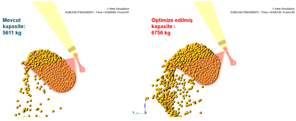 Çalışma sonunda, dolum kapasitesi açısından %20 performans artışı sağlayan bir kepçe şekli elde edilmiştir.