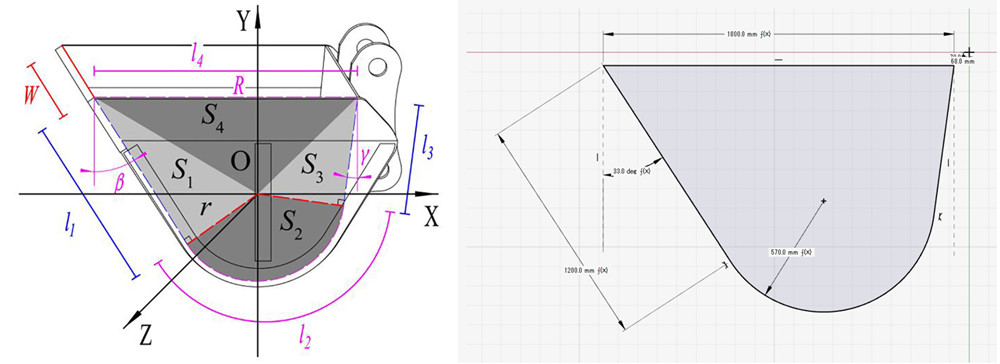 Altair Inspire‘nın çizim araçları, kolayca parametrik bir kova şekli oluşturmanıza olanak tanır. Çalışma için aşağıda gösterildiği gibi parametrik geometrili bir kepçe modeli oluşturulmuştur.