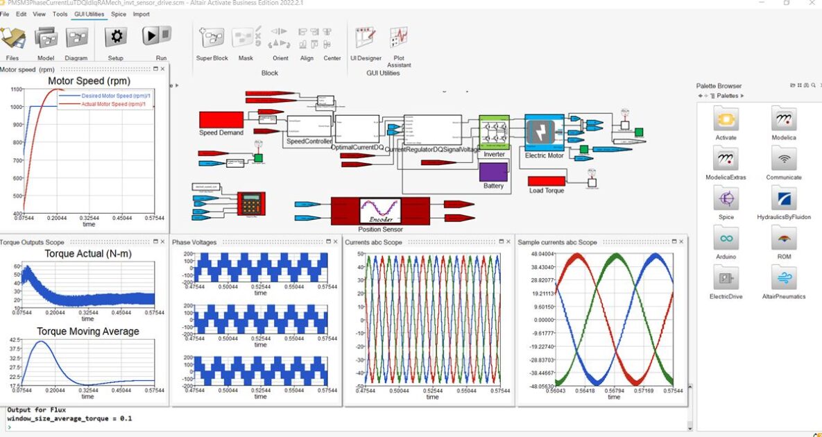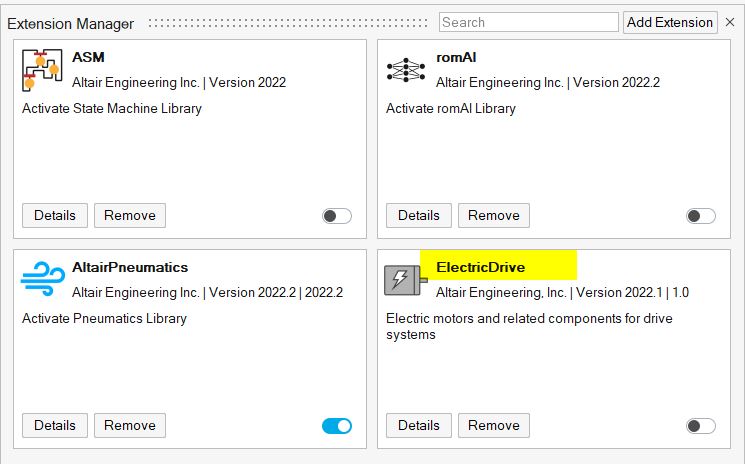 ElectricDrive Uzantısı, Altair Flux (elektromanyetik) ve Altair FluxMotor çözümlerinden e-motor modellerine dayalı sistem modellerini kolayca oluşturmak için blok kütüphanelerini ve iş akışlarını destekler.