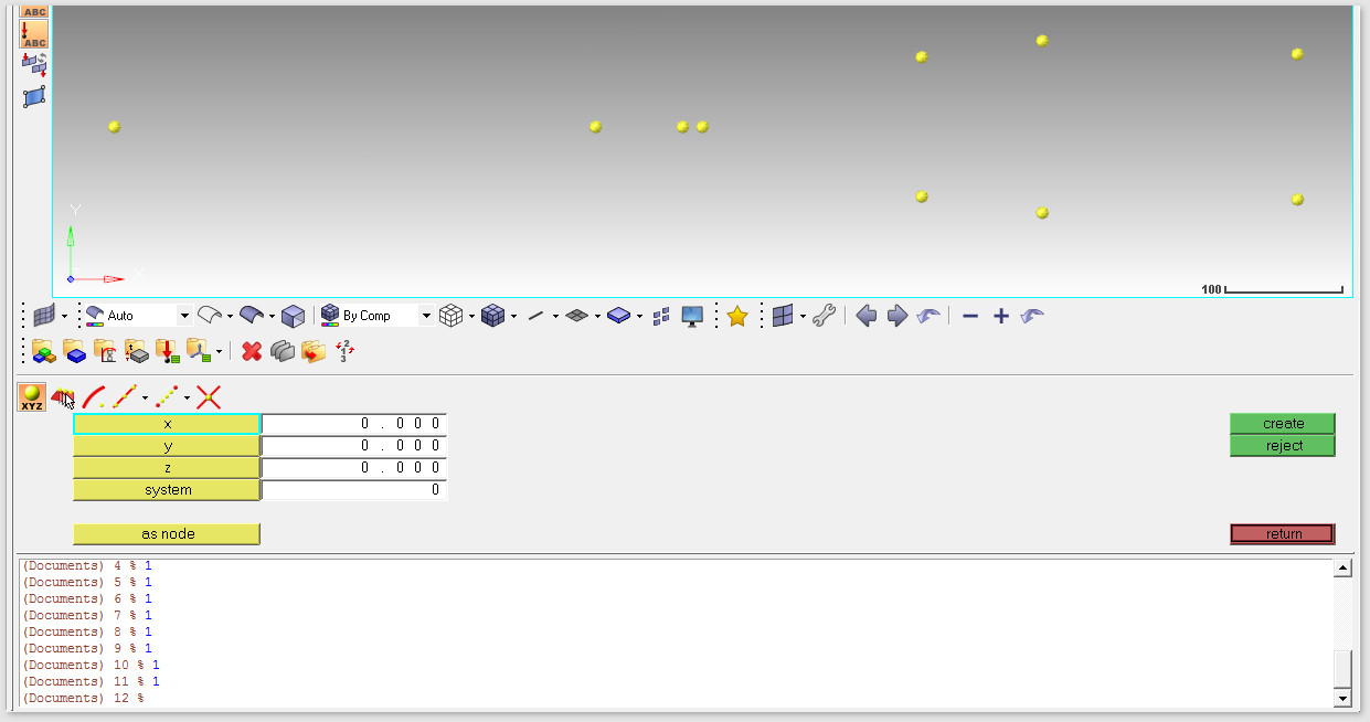 Command Window bölümünde boşluğa tıklayarak Ctrl+V klavye tuşlarıyla kopyaladığınız koordinat bilgilerini yapıştırınız. Oluşturulan node lar ekranda belirecektir. ( İpucu : Klavyeden F (fit) harfine basarak tüm node ları görüntüleyebilirsiniz.)