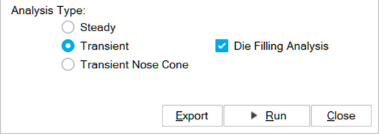 Nasıl Kullanılır? : Run panelinden Analysis Type > Transient > Die Filling seçeneğini seçin.