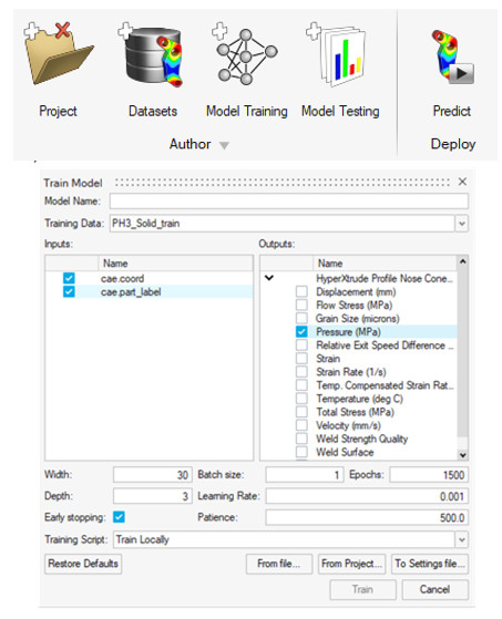 Bu, makine öğrenimini eğitmek için bir veri seti gerektirir ve analizlerden elde edilen sonuç dosyalarını kullanarak eğitir. Bu özellik, hem ekstrüzyon analizi hem de kalıp gerilme analizi için desteklenir.
