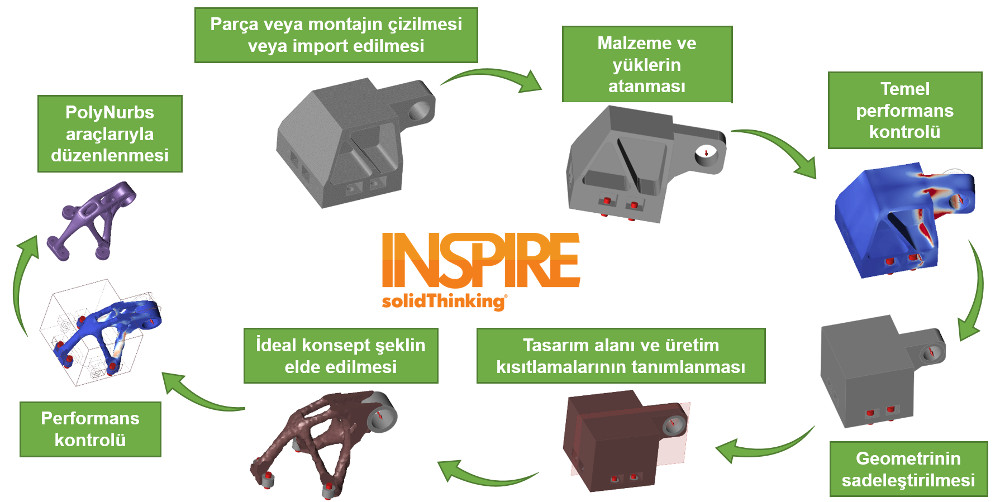 ALTAIR’ın 30 yıla yaklaşan alanında lider optimizasyon teknolojisini (OptiStruct ) arka planda kullanan solidThinking Inspire yazılımı, kullanması ve öğrenmesi kolay arayüzüyle sonlu elemanlar analizleri konusunda uzman olmadan , tasarımlarınızın ağırlığını azaltmaya imkan sağlamaktadır.