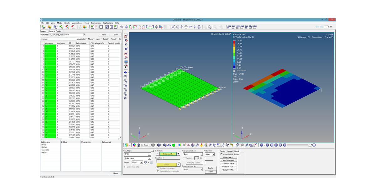 Özellikle havacılık sektöründe oldukça dikkat edilen Reserve Factor değeri zone tabanlı modellenmiş kompozit yapının elemanları üzerinden kuvvet ve moment çıktıları istenerek Altair OptiStruct ile gerçekleştirilmiş bir analiz sonrasında ESAComp’ta hesaplatılabilir. Tüm bu değerlerin incelemesi ise Altair HyperWorks içerisinde efektif bir şekilde gerçekleştirilebimektedir.