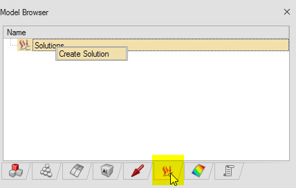 Altair SimLab yazılımında mesh atma ve malzeme, property tanımlama gibi işlemleri tamamladıktan sonra “Solutions browser” bölümüne giriniz ve “Solutions” ifadesine sağ tıklayarak “Create Solution” seçimini gerçekleştiriniz.