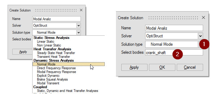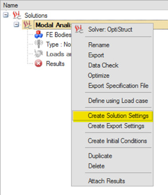 Solution ismine ( örneğimizde Modal Analiz ) sağ tıklayarak çözüm seçeneklerini oluşturunuz. ( Create Solution Settings)