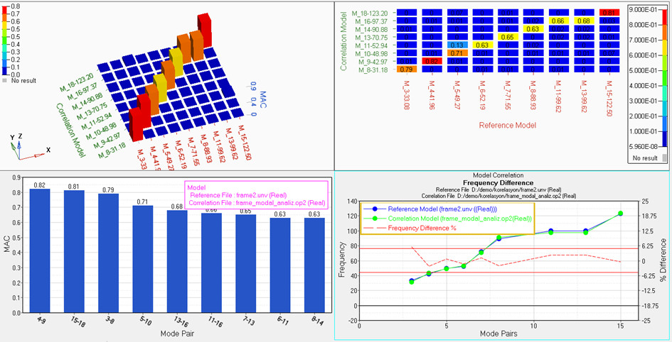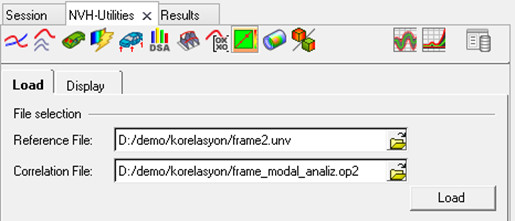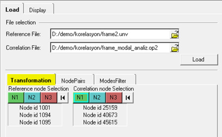 Load tabında referans dosyası olarak UNV uzantılı test sonucu, korele edilecek dosya olarakta simülasyon sonuç dosyasını seçerek Load butonuna basınız.