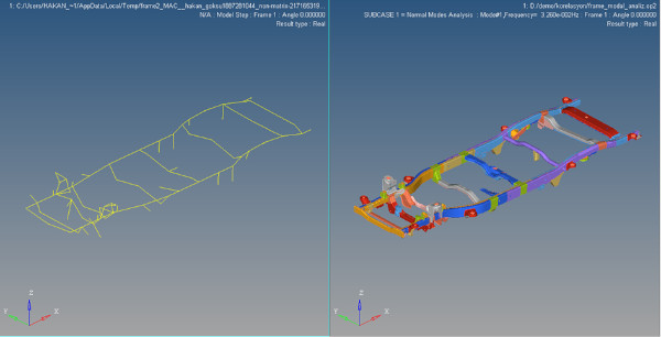 Test ve simülasyon sonuçlarının karşılaştırılması Altair HyperView yazılımında gerçekleştirilmektedir.