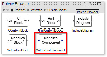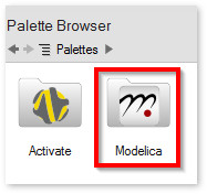 Modelica bloklarını Palette Browser içerisinde yer alan Modelica simgesine çift tıklayarak kullanabilirsiniz.