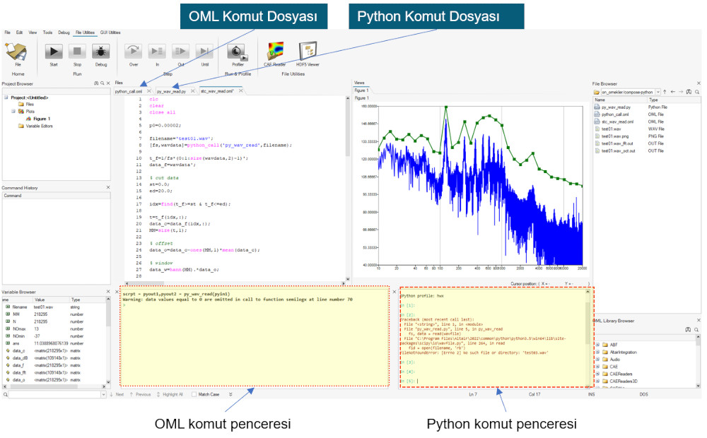 Altair Compose‘da sağlanan eksiksiz ve Entegre Geliştirme Ortamının (IDE) üzerine, Python komut dosyalarınızı OML ile birleştirebilir (çift taraflı köprü) ve başka bir Python IDE ve Octave gibi ayrı uygulamalar kullanmak yerine tek bir ortamda hepsi bir arada özelliklere sahip bir araç zinciri oluşturabilirsiniz.