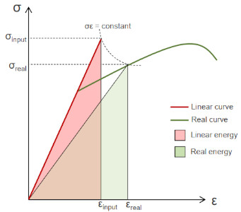 NEUBER yöntemi en çok lineer analizde plastik düzeltmelerde kullanılır. Elastik hesaplanan gerilmeleri, elasto-plastik gerilme / gerinim davranışı tahminlerine dönüştürür.+
