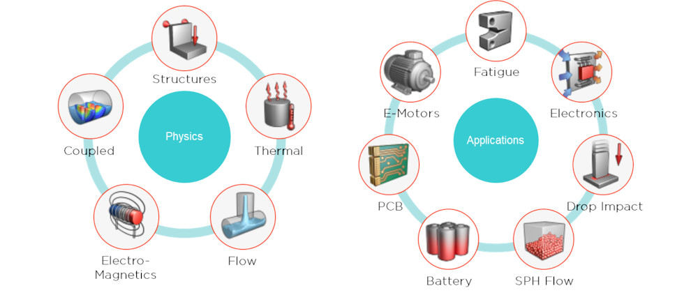 Altair SimLab yazılımı, model kurulumu (mesh, sınır koşullar vb.) , analiz ve sonuç inceleme için tek bir arayüz sunmaktadır. Altair’in sektör lideri ve entegre çözücüleri ile geçekleştirebileceğiniz analiz tipleri;