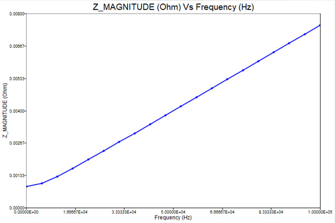 Bu analiz drenaj ağının endüktansını çıkarmak için yapılır. Modelin ilgili yüzleri dikkatlice seçilir ve portlar atanır. Endüktans için sonuçlar aşağıdaki gibidir: