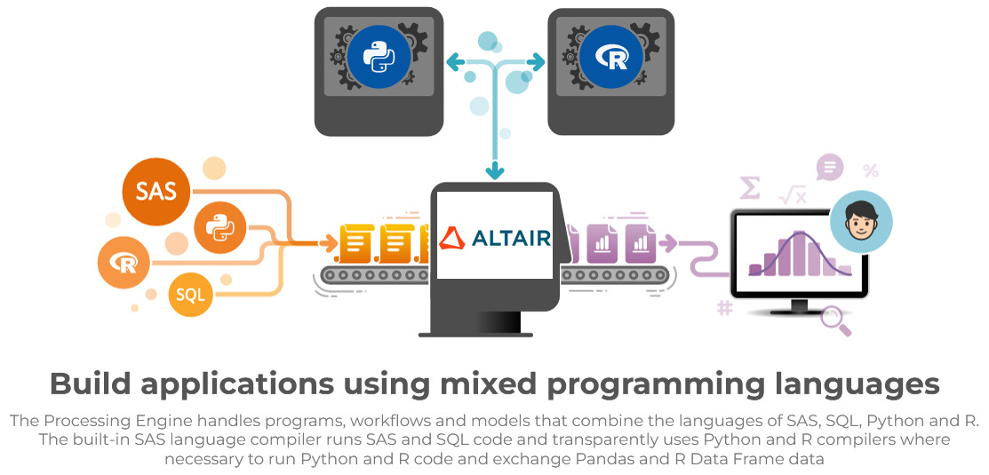 Altair SLC™, SAS dili sözdiziminde yazılmış programları çeviri yapmadan ve üçüncü taraf ürünleri lisanslamaya gerek kalmadan çalıştırır.