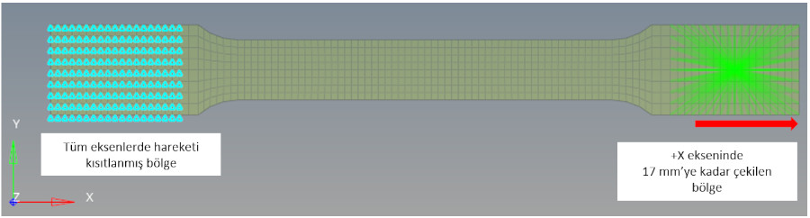 Örneğin aşağıda yer alan test kuponunun ( elasto-plastik ) , bir ucundan sabitlendiği ve diğer ucundan 17 mm’ye kadar çekildiğini kabul edelim.