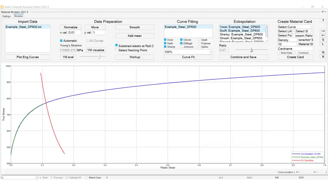 Altair Material Modeler, malzeme testi sonuçlarına dayalı malzeme parametresi tanımlanmasında simülasyon mühendislerini desteklemek için geliştirilmiştir.
