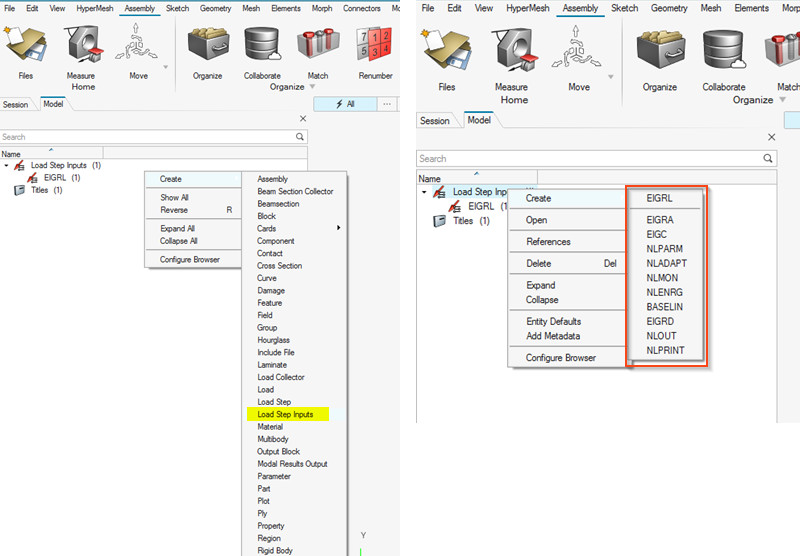 Altair HyperWorks 2021.1 versiyonundan başlayarak, Altair OptiStruct kullanıcı profilinde analiz tanımlamaları için gereken bazı genel doğrusal (linear) ve doğrusal olmayan (nonlinear) tanımlamalar, Load Step Inputs…