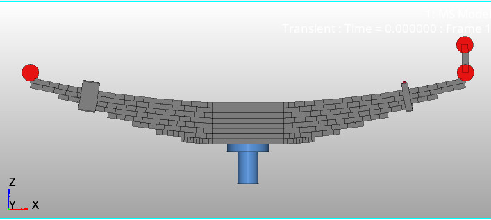 Altair MotionSolve yaprak yay modeli oluşturmak için bir araca sahiptir. Bu araçta yaprak yayı önce yaprak sonra gövdelere ayrılır. Malzeme davranışını modellemek için değişen kalınlık ve genişliğe sahip kiriş elemanları ,yapraklar arası temas ve sürtünmeyi modellemek için 3D temaslar (contact) kullanmalıyız. Bir yaprak yay oluşturmak için girmemiz gereken parametre sayısı gördüğünüz gibi oldukça fazla. Bir yaprak yayı bir test donanımına koymadan ve ondan bir Kuvvet-Yer değiştirme eğrisi çıkarmaya çalışmadan önce bir yaprak yay oluşturmak çok zaman alacaktır.