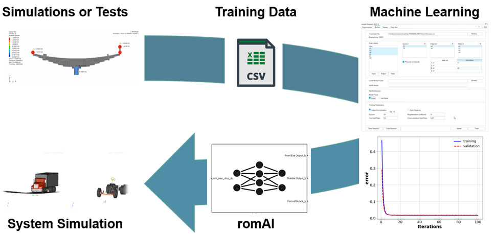 Bir yaprak yay süspansiyonun indirgenmiş modelini (romAI tabanlı) oluşturmayla ilgili adımlar aşağıdaki resimde gösterilmektedir.