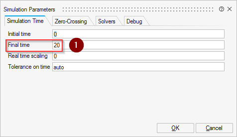 - Final time’ı Inspire içerisinde hazırladığınız modelin simülasyon süresiyle aynı değer olarak belirlemelisiniz. Gerçekleştirilen çalışmada simülasyon süresi 20sn olarak belirlenmiştir. [1]