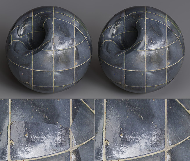 Triplanar Mapping seçeneği ile doku, her üç eksen boyunca üç kere eşlenir ve kenarlar arasında düzgün bir şekilde karıştırılır. Bu, UV eşleşmemiş meshler için kusursuz sonuçlar yaratır.