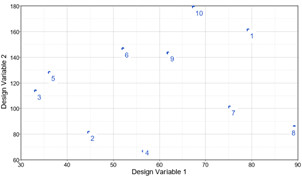 Örnek sayısını önceden tanımlama yükünü ortadan kaldırmak için Altair HyperStudy, tasarım alanını örnekleyen ve istenen doğruluğa ulaşıldığında duran uyarlanabilir örnekleme (yanıt-uyarlamalı örnekleme olarak da adlandırılır) stratejisini kullanır. Algoritma, kullanıcı tanımlı aralıklarla, istenen çapraz doğrulama r-kare değerine ulaşılıp ulaşılmadığını kontrol etmek için bir yanıt yüzeyi oluşturur ve bu periyodik süreç, genişletilebilir bir örnekleme şeması gerektirir. Her aralıkta, örnekleme dizisi durur ve çapraz doğrulama r-kare hesaplandıktan sonra, o ana kadar tahakkuk eden örnekler atılmadan örnekleme devam etmelidir. Bu nedenle, Latin HyperCube (LH) gibi geleneksel yöntemler genişletilemezliklerinden dolayı uygun değildir. LH’nin genişletilemezliğini gösteren iki görüntü vardır; Şekil 1, on örneğin ilk dizisini gösterir ve Şekil 2, on örneğin bir sonraki dizisini ve bu ilk dizinin on örneğini gösterir. LH yeni bir dizi oluşturduğunda, önceki dizi atılır ve bu da Şekil 2’de gösterildiği gibi tasarım uzayında örneklerin düzgün olmayan dağılımına neden olur.