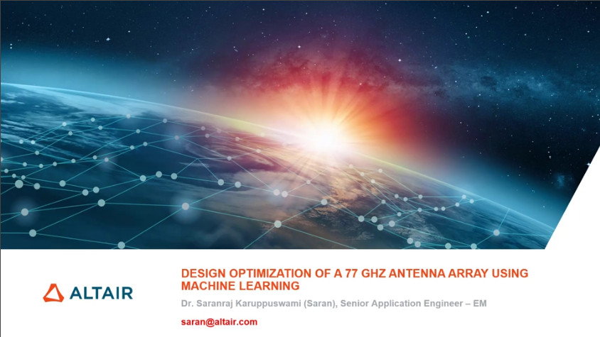 Aşağıdaki videoda, makine öğrenmesi (ML) teknikleri kullanılarak 77 GHz’de çalışan 40 elemanlı bir yama anten dizisi tasarlamak için iş akışı sunulmaktadır. Bu amaçla, tasarımı gerçekleştirmek için Altair Feko (Yüksek frekans elektromanyetik simülasyon) ve Altair HyperStudy (Multidisipliner optimizasyon) yazılımları birlikte kullanılmıştır. Bu çalışmayı, dalga yayılım modelleme yazılımı Altair WinProp‘ta bir V2V iletişim senaryosu göstermek için bir araçta makine öğrenimi için optimize edilmiş anteni kullanan bir vaka çalışması izlemektedir..