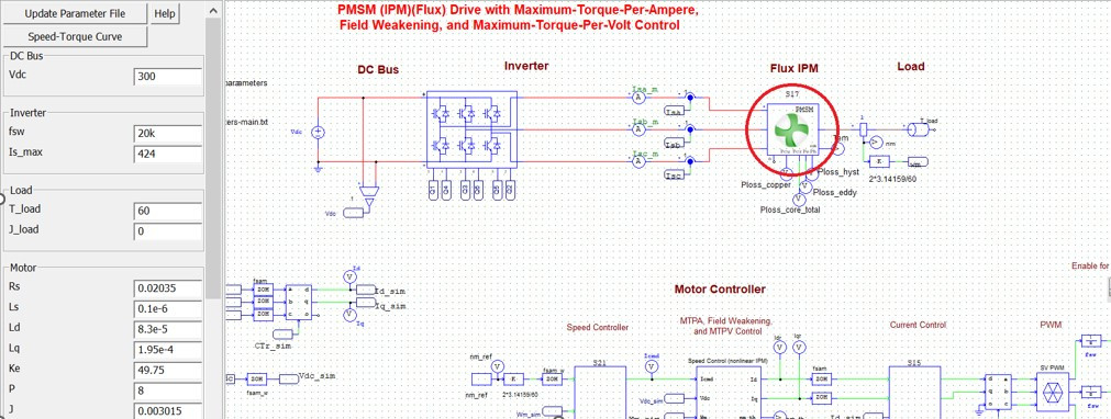Motor sürücüleri, güç elektroniği ve motor kontrol tasarımına özel bir araç olan Altair® PSIM™‘de simüle edilebilir. Tamamlayıcı olarak, Altair® Flux® ve Altair® FluxMotor® gibi sonlu eleman tabanlı araçlar, PSIM tarafından doğrudan kullanılabilen ve 1D‘de temsil edilen sistemin geri kalanına bağlanabilen elektrik makinelerinin indirgenmiş modellerini sağlayabilir. Hem motor hem de invertör için yüksek doğruluklu modeller kullanılabilir. Temel ilgi alanları, birleşik motor sürücüsünün verimliliği, motorun kontrol edilebilirliği ve torktaki uzamsal harmonik dalgalanma gürültü ve titreşime (NVH) katkıda bulunacak kadar büyük ve yeterince düşük frekansta olabileceğinden, geliştirilen tork özellikle ilgi çekicidir.